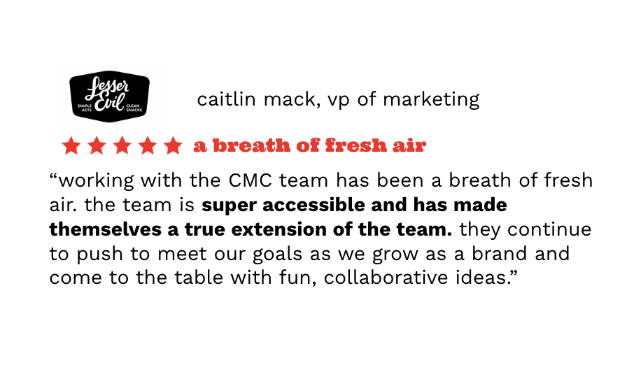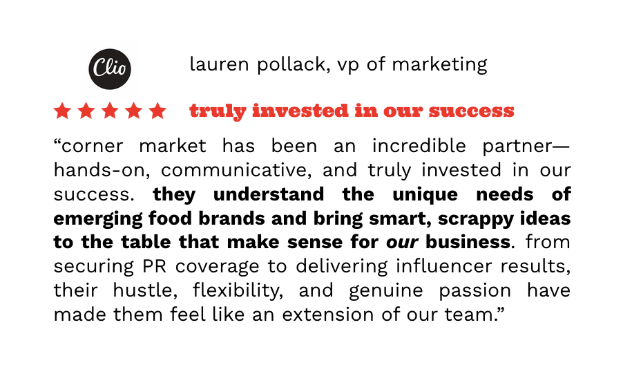 with a team that’s grown iconic brands such as KIND, OATLY, Whole Foods, Welch’s Fruit Snacks, Applegate and more, we don’t just build brand awareness - we build brand demand. we call ourselves successful when the market looks at our brands and thinks, “I’m seeing this everywhere — I need it.”